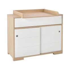 Schardt Slide Oak Wickelkommode 2 Schiebetüren MDF Weiß/Vincenza Eiche – Inkl. Wickelaufsatz