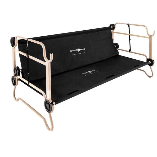 Das Disc-O-Bed XL Etagenbett anthrazit, ist das Luxus- Outdoor- und Campingbett! Es ist vielseitig nutzbar, als Einzelbett, Etagenbett oder als Sitzbank. Das Gestell besteht aus robustem , pulverbeschichtetem Stahl und die Liegefläche ist aus hochwertigem, strapazierfähigem Polyester 600D gefertigt und sorgt für einen ergonomisch komfortablen Schlaf. Das Bett ist in nur rund fünf Minuten aufgebaut und kann platzsparend in zwei Tragetaschen verstaut werden. Das Disc-O-Bed XL Etagenbett eignet sich auch optimal als Gästebett zu Hause.