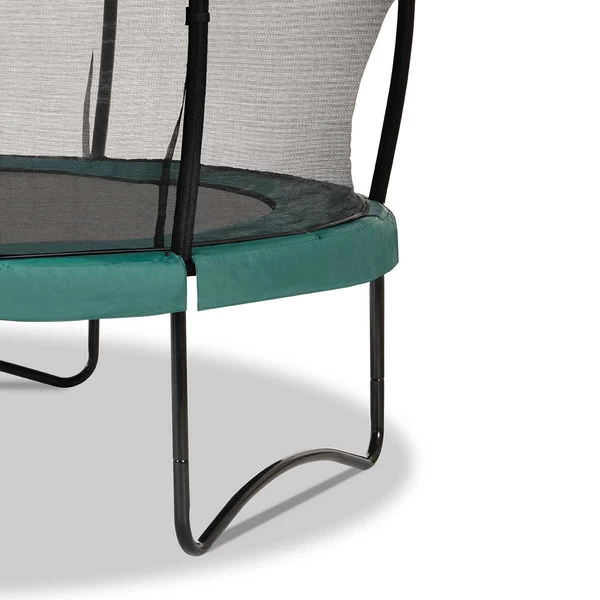 Das EXIT Allure Premium Trampolin ist ein rundes mit Schutzrand und einem Sicherheitsnetz so wie klassischen W-förmigen Füßen. Mit einem galvanisierten und pulverbeschichteten Rahmen, sowie doppelkonischen Federn ist dieses bärenstarke Trampolin eines mit Charme. Dank des EXIT Foot Protection Systems (FPS), einem Netz zwischen dem Sprungtuch und dem Schutzrand des Trampolins, geraten Trampolinspringer nicht mit den Füßen zwischen die Sprungfedern. Das Sicherheitsnetz hat einen überlappenden Eingang, der automatisch schließt, sodass er nicht unbemerkt offen stehen bleiben kann. Die Rohre des Sicherheitsnetzes sind mit Schaumstoff überzogen.