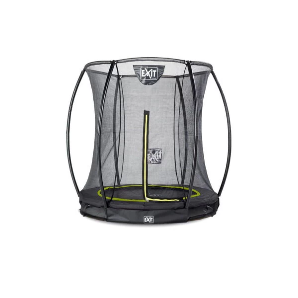 Das EXIT Silhouette Bodentrampolin ist ein kompaktes rundes Trampolin mit einem mattschwarzen Schutzrand. Es wird auf eine Grube im Boden gestellt und so ist sichergestellt, dass die Kinder bei einem Fehlsprung von einem hohen Trampolin herunterfallen können.