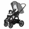 Die Sitzeinheit lässt sich mittels separat erhältlichem Adapter in zwei verschiedenen Höhen auf dem Gestell befestigen. Auf der hohen Sitzposition können Sie kleinere Kinder rückenschonend in den Kinderwagen hineinsetzen und wieder herausnehmen. Die niedrigere Sitzposition erleichtert Kleinkindern das selbständige Ein- und Aussteigen. Mit nur einem Handgriff kann der Sportwagensitz in eine waagrechte Position gebracht werden. Der Rücken Ihres Kindes ist dabei gerade und die höher gelagerten Füße sorgen für einen entspannten Liegekomfort. Das ausklappbare Sonnenverdeck sorgt für großzügigen Schatten und schützt Ihr Kind vor UV-Strahlen.