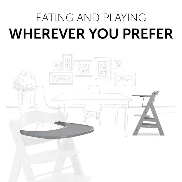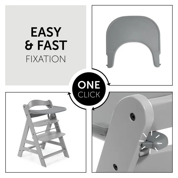 Das Alpha Click Tray ist eines der Accessoires, das zum hauck Alpha+ Hochstuhl passt und jederzeit ergänzt werden kann. Durch sein einfaches Klick-System wird der Tisch am Alpha+ Holzhochstuhl mit nur einer Hand schnell, einfach, ohne Werkzeuge befestigt. So wird der mitwachsende Holzhochstuhl für dich und dein Kind bei jeder Mahlzeit noch flexibler.