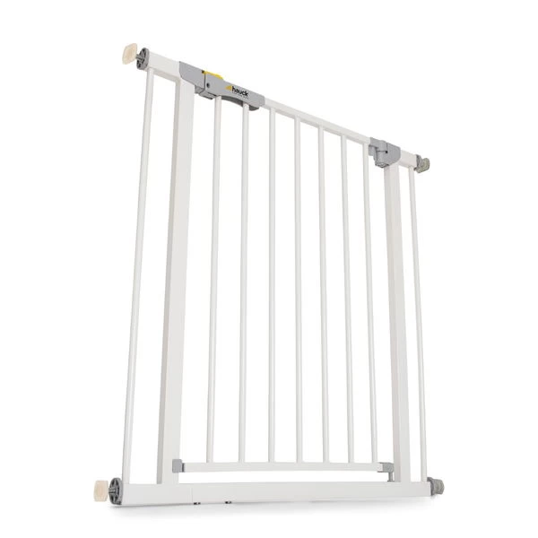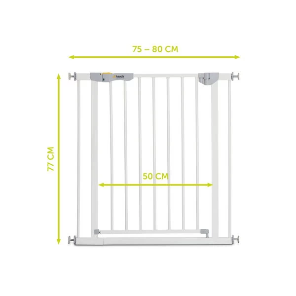 Die Tür des Gitters lässt sich bequem und mit nur einer Hand in beide Richtungen öffnen. So ist die andere Hand für das Baby oder Einkaufstaschen frei. Nach dem Hindurchgehen fällt die Tür automatisch wieder sicher zu, was auch der Farbindikator als zusätzliche Sicherheit bestätigt. Damit die Tür auch bei kleinen Kinderhändchen geschlossen bleibt, verfügt das Gitter über einen zweifachen, kindersicheren Verschluss, den nur Erwachsene bedienen können.
