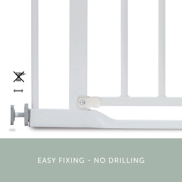 Mit unserem Clear Step Gate kannst du Türen und Treppen mit einer Öffnung von 75 – 80 cm kindersicher gestalten und zugleich von einem stolperfreien Durchgang profitieren. Denn dieses Schutzgitter hat einen extra flachen Durchgang, der insbesondere bei Treppen mehr Sicherheit bietet. Der zusätzliche Stopper erlaubt es dir, die Tür in eine Richtung zu sperren.