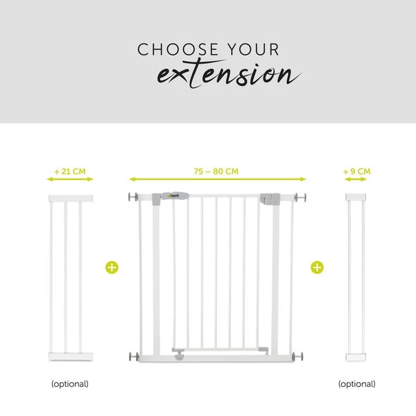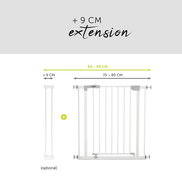 Das Open’n Stop Safety Gate bietet kindgerechte Sicherheit im Haushalt. Es ist fĂĽr TĂĽrrahmen und Treppengeländer mit einer Breite von 75 – 80 cm geeignet. FĂĽr breitere Durchgänge empfehlen wir das Open’n Stop inkl. 9 cm Verlängerung (84-89 cm) bzw. das Open’n Stop inkl. 21 cm Verlängerung (96 – 101 cm). Alle Modelle können mit weiteren Verlängerungen und Y-Spindeln kombiniert werden, um sie an Rundholmtreppengeländern zu befestigen.