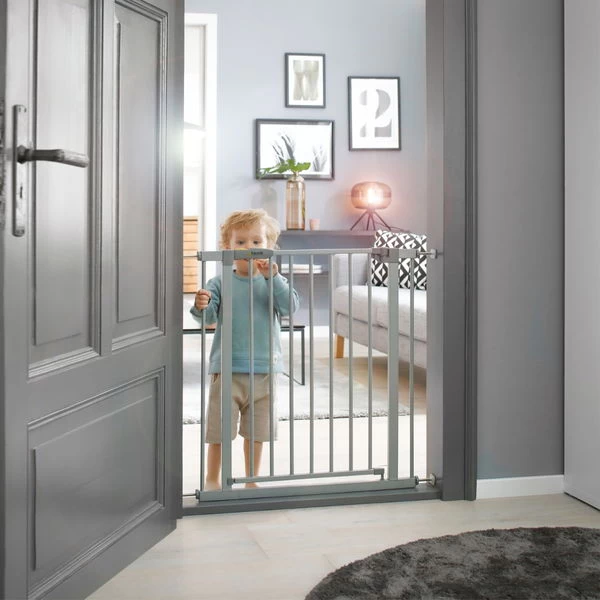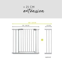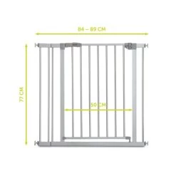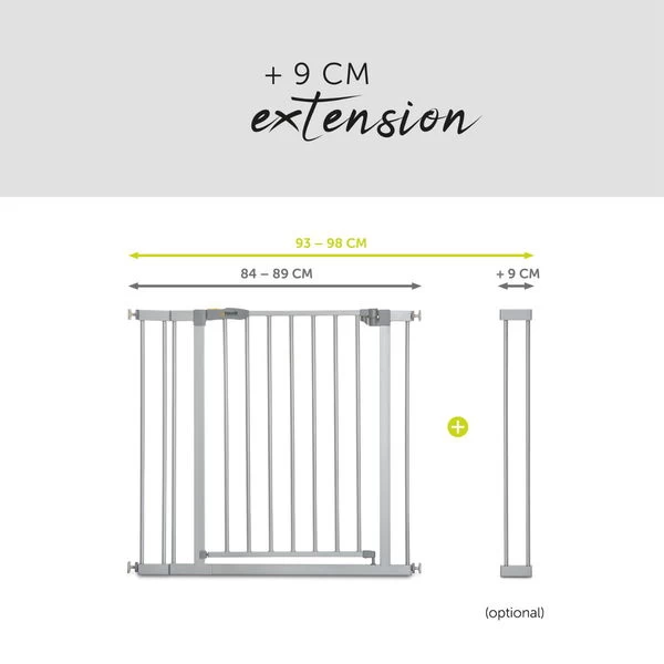 Das Metallschutzgitter Stop N Safe 2 wird bereits mit einer 9 cm Verlängerung geliefert und ist dadurch ideal zur Absicherung von Türen oder Treppen mit einer Breite von 84 – 89 cm.