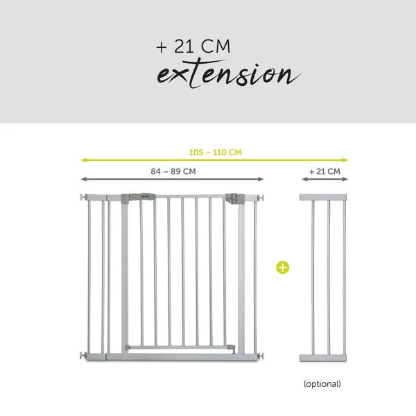 105 – 110 cm = Kindergitter + 9 cm Verlängerung (inklusive) + 21 cm Verlängerung (optional)