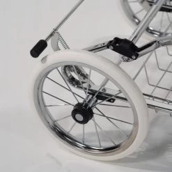 Benutzen Sie zur Reinigung des Fahrgestells ein weiches Tuch und mit einem Putz- und Poliermittel nur die verchromten und glanzverzinkten Teile behandeln (um den Glanz und die Oberfläche optimal zu erhalten und zu schützen). Im Winter müssen Sie unbedingt die Achsen und den Drahtkorb von den Streusalzrückständen befreien. Auch die Räder und Flachovalrohrbogen sind dabei zu beachten und zu reinigen.