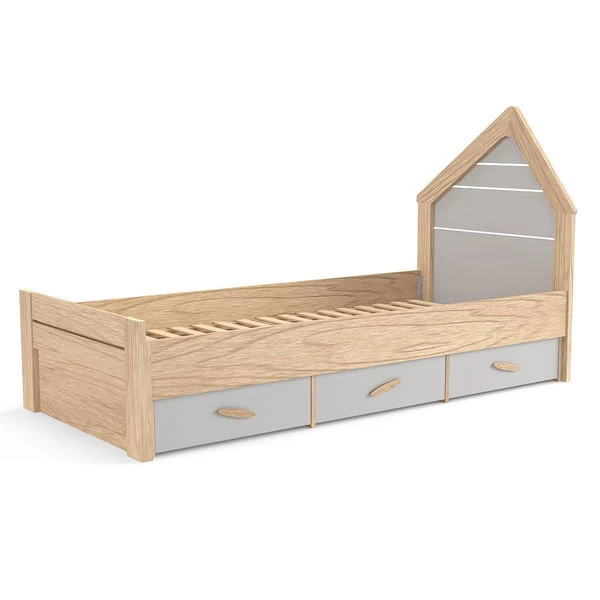 Nature Kid My House Einzelbett natur/grau 90 x 200 cm inkl. Schublade