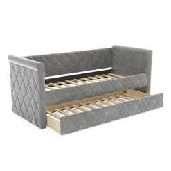 ArtKid Vilena Sofabett – 90 x 200 cm Velour grau mit Gästebett und Spielzeugkiste