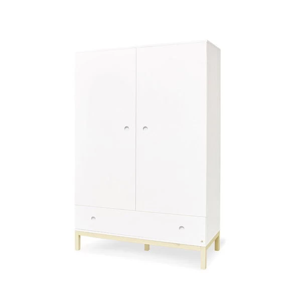 Der Pinolino Skadi Kleiderschrank begeistert mit eingefrästen, runden Griffmulden, die ein echter Hingucker sind. Das Massivholz-Möbel aus massiver Kiefer ist weiß lasiert und besitzt einen massiven, geradlinigen Sockel, der cremeweiß lasiert ist.