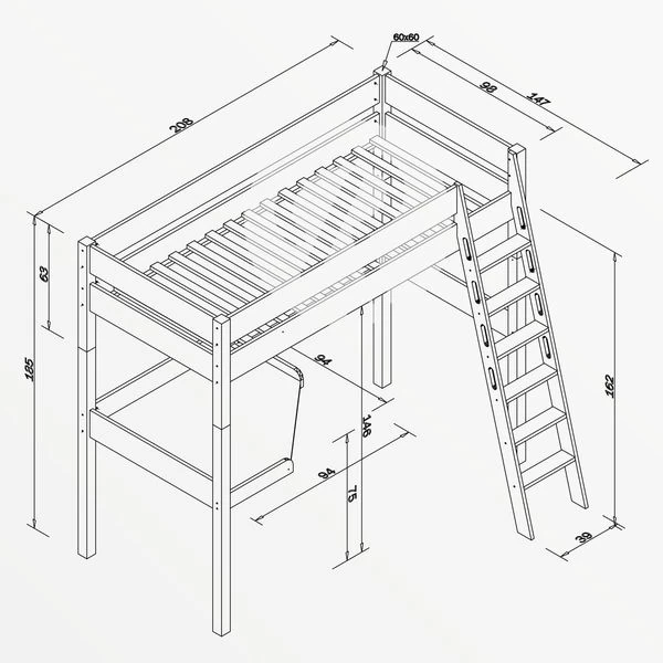 Das Relita RENATE Hochbett ist ein Qualitätsbett aus Massivholz zu einem erschwinglichen Preis. Die schräge Leiter hat Griffmulden und kann wahlweise links oder rechts montiert werden. Die umlaufende Absturzsicherung schützt vor dem Herausfallen. Ein praktischer Eckschreibtisch ist im Lieferumfang enthalten. Das Bett ist außerdem auch als Einzelbett aufbaubar. Dank zahlreichem Zubehör in verschiedenen Farben kann das Relita RENATE Hochbett individuell ausgestattet werden.