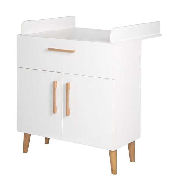 Die roba Wickelkommode Mick ist im trendigen, skandinavischen Stil gehalten und kommt inklusive Wickelansatz. Sie bietet viel Platz für alle Wickelutensilien, die griffbereit aufbewahrt werden können. Die Türen und Schubladen sind mit der Soft Close-Technik für sanftes und leises Schließen versehen.