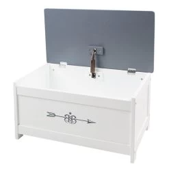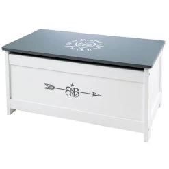 Die Roba Spielzeugtruhe lässt sich auch bequem als Bank nutzen. In ihr lassen sich allerlei Spielsachen oder Kleidungsstücke verstauen, damit im Kinderzimmer Ordnung herrschen kann. Der Dämpfungsbeschlag und der Sicherheitsabstands zwischen Deckel und Truhe verhindern ein einklemmen der Finger.