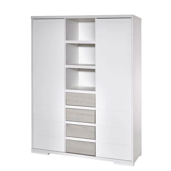 Der Schardt Maxx Boathouse Kleiderschrank überzeugt durch reduzierte Formensprache. Die grifflosen Türfronten aus weißem Dekor harmonieren hervorragend mit Schubkstenfronten in Boathouse Pinie. Zusätzlich bieten 3 offene Regalfächer weiteren Stauraum.