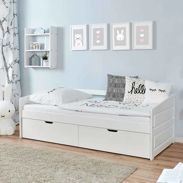Ticaa Sofabett Micki mit 2er Schubkästen Buche weiß – 90×200 cm