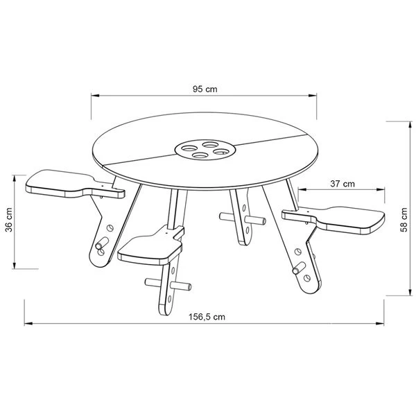 Der Timkid Tavi Spieltisch ist ein vielseitiges und sicheres Kindermöbelstück, das speziell für kleine Kinder entwickelt wurde. Mit seinen vier fest angebrachten Sitzgelegenheiten bietet er den kleinen Kreativen große Sicherheit und Stabilität. Der runde Tisch verfügt über eine Vertiefung in der Mitte, in die Becher für Malstifte oder eine Schale für Spielzeug eingelassen werden können. Der Tavi Spieltisch besteht aus Multiplex mit einer HPL Beschichtung, was ihn äußerst robust und pflegeleicht macht. Die Fußstützen lassen sich einfach an die richtige Höhe anpassen, um ergonomisches Sitzen zu ermöglichen. Mit seiner Kippelsicherung eignet sich der Tavi Spieltisch besonders gut für Spielecken im öffentlichen Raum wie Museen, Cafés, Arztpraxen oder Behörden. Er ist ein variables Kindermöbelstück, das Sicherheit, Komfort und Spaß für kleine Kinder bietet.